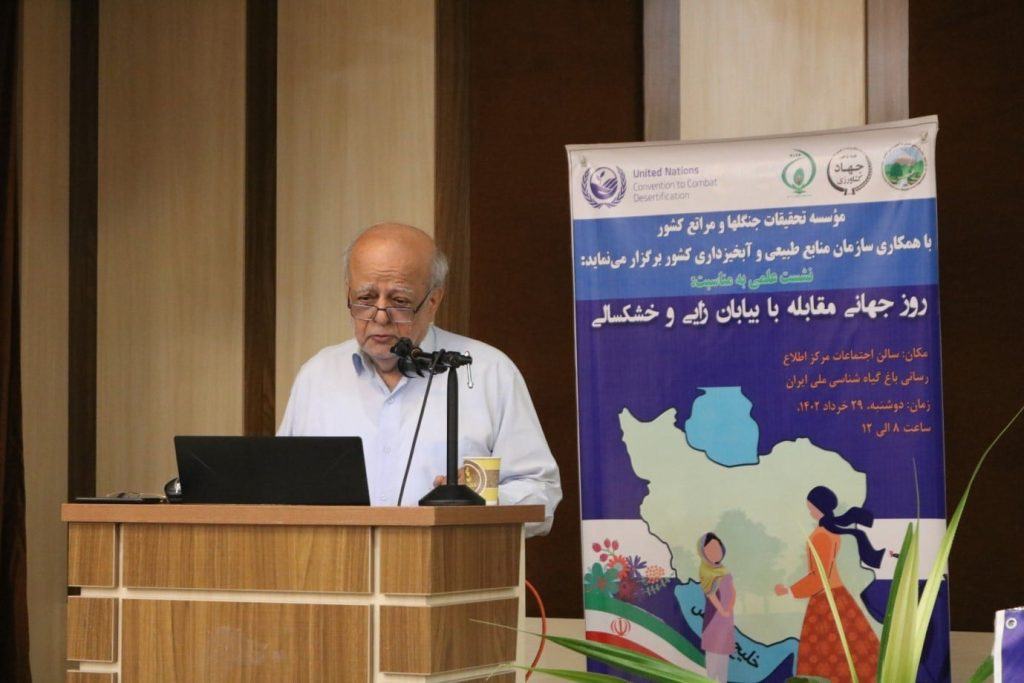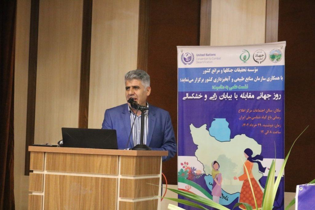 همزمان با گرامی‌داشت روز جهانی مقابله با بیابانزایی در کشور،“نشست علمی روز جهانی مقابله با بیابانزایی” روز سه‌شنبه 1402/3/29 با حضور جمعی از مسئولان، استادان، صاحب‌نظران، نخبگان، پژوهشگران، متخصصان و پیشکسوتان این حوزه در محل سالن مرکز اطلاع‌رسانی باغ ملی گیاهشناسی ایران برگزار شد. میزبانی و برنامه‌ریزی این نشست توسط بخش تحقیقات بیابان مؤسسه تحقیقات جنگلها و مراتع کشور با همکاری و حمایت معاونت آبخیزداری، امور مراتع و بیابان سازمان منابع طبیعی و آبخیزداری کشور، انجام شد.